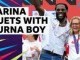 England manager Sarina Wiegman is surprised by her favourite artist Burna Boy during celebrations for the Lionesses' Euro 2025 win.