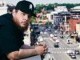 The actor plays a school bus driver trapped in US wildfires, appearing with his real mother and son.